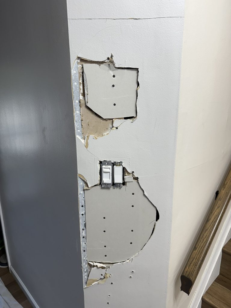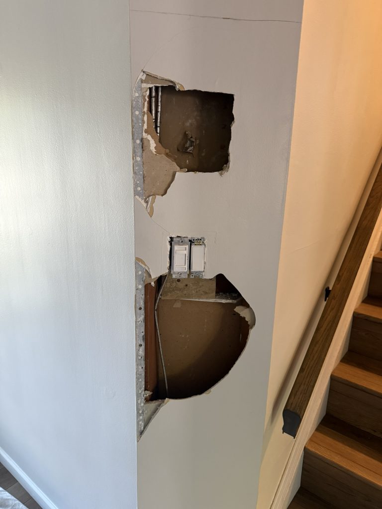 Don’t let cracks, nail pops, or water damage compromise your walls. We expertly address all types of drywall damage, from settling seams to accidental holes. Our repair process focuses on creating a durable, invisible fix by carefully matching existing textures, reinforcing joints, and finishing the surface to the correct sheen. Once painted, our patched areas disappear, leaving your walls looking pristine.
